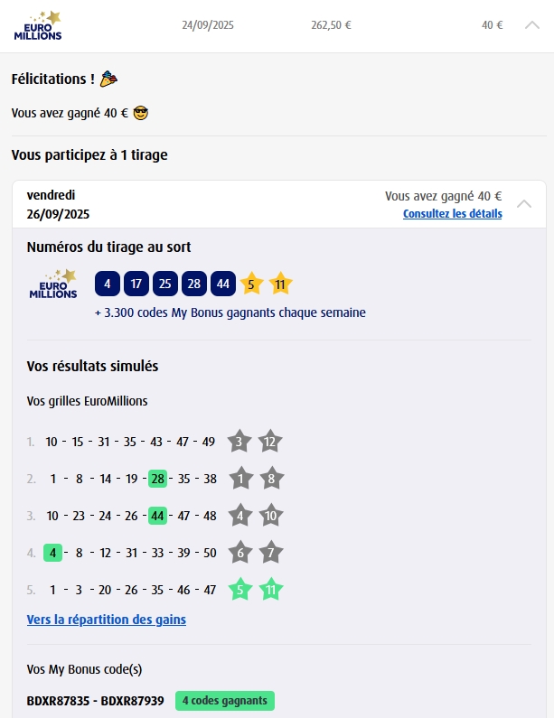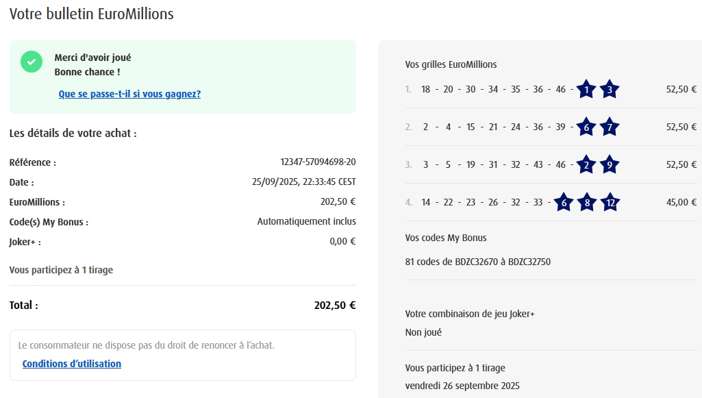 Regroupement des mises pour la cagnotte spéciale du 26/09/25