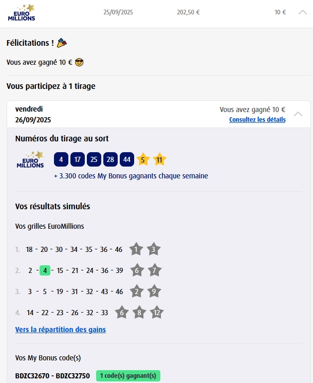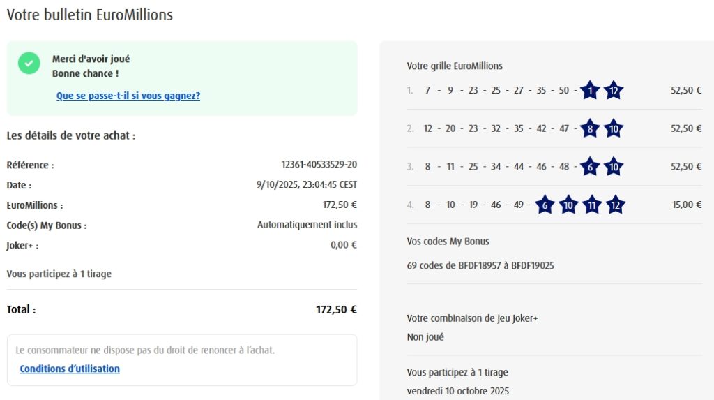 Pas de bulletin. Regroupement des mises pour le tirage du 10/10/2025
