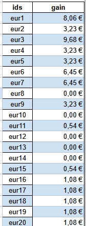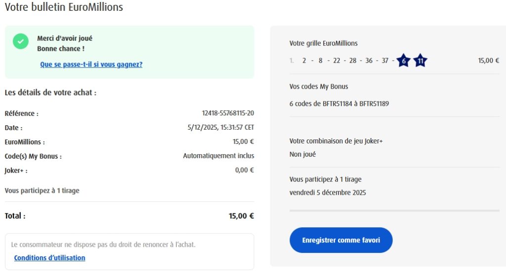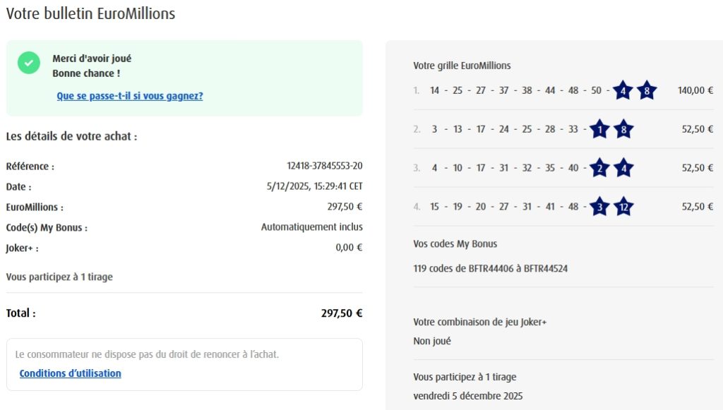 Exemple: Participation Euromillions EUR1 - Un conseil? Faites un virement automatique chaque lundi, cela vous évitera d’oublier de jouer.. 🙂