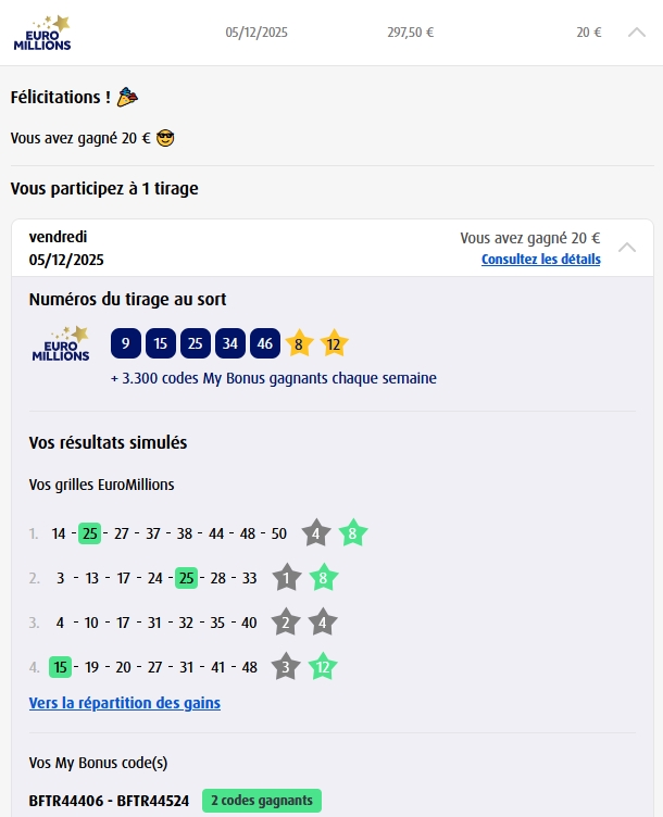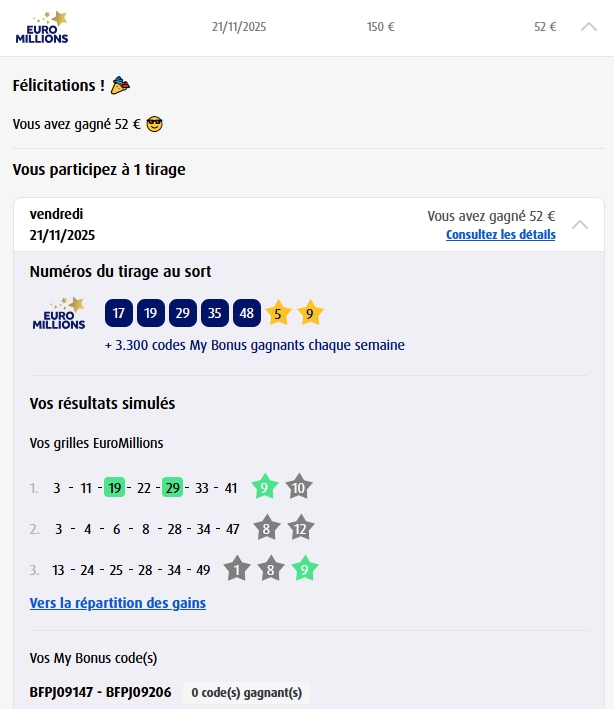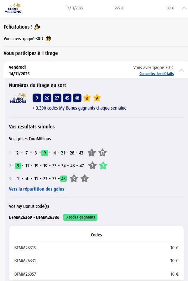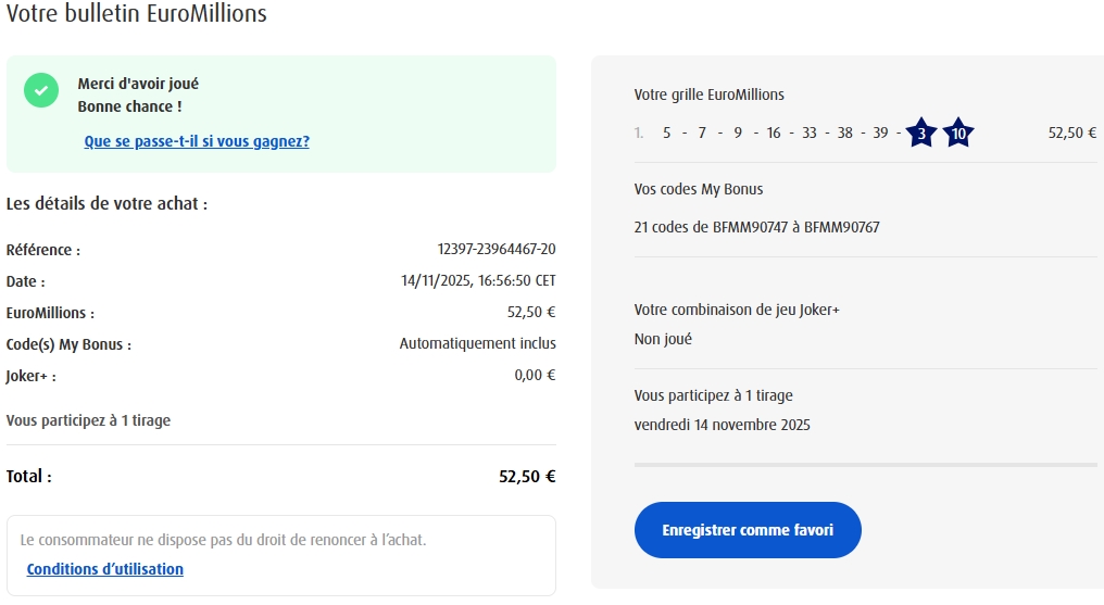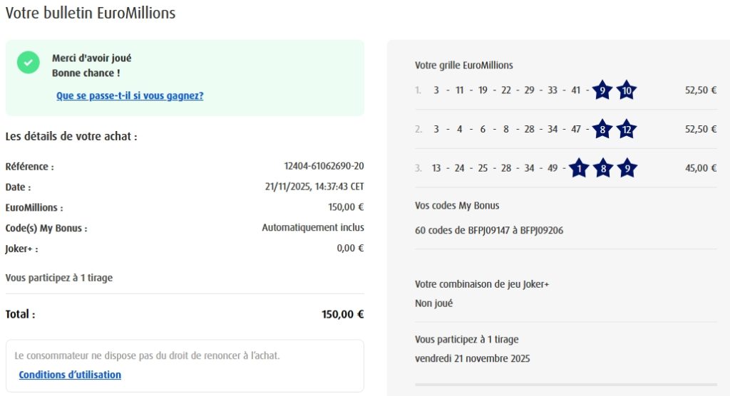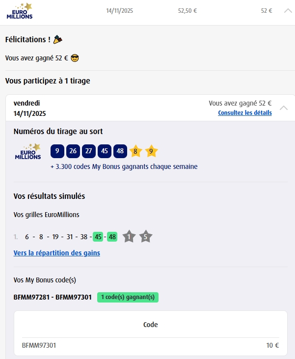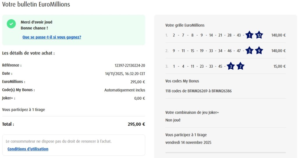 Regroupement des mises pour la cagnotte du 14/11/2025