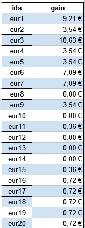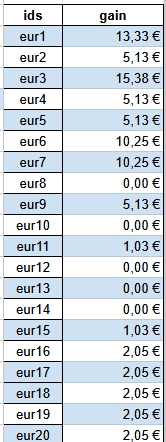 - Une mise équivaut à 5€. Vous pouvez miser autant de parts de 5€ que vous le souhaitez.
