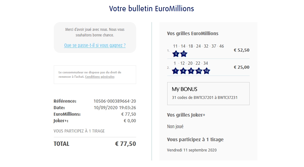 Pas de bulletin, regroupement des gains pour le tirage du 02/09/2023