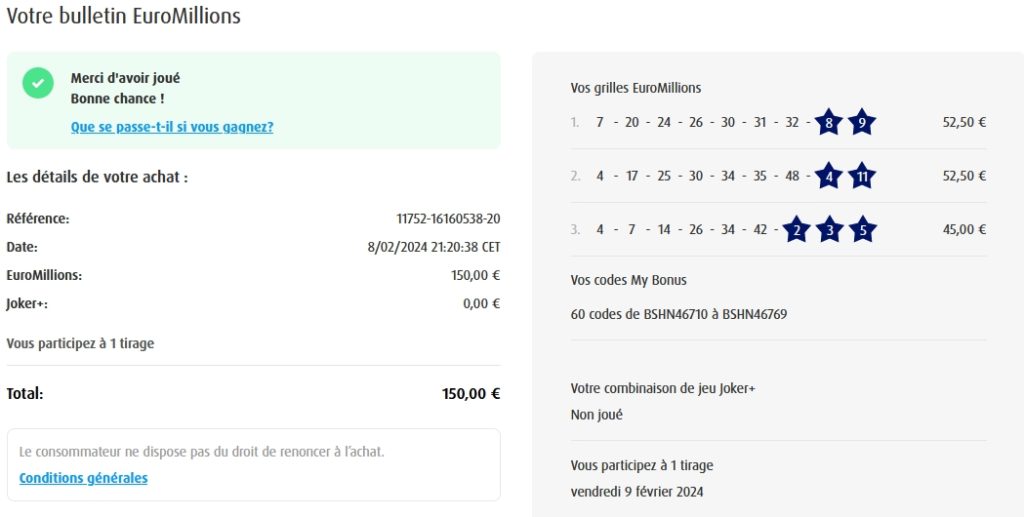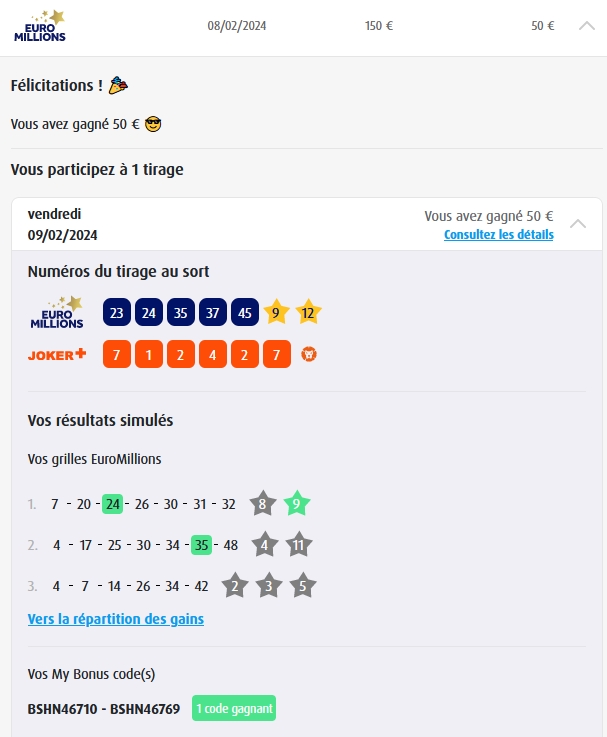 Categories Bulletin Tirage Bulletin du 09/02/2024 Post author By yves Post date 8 février 2024 Gains: 50€