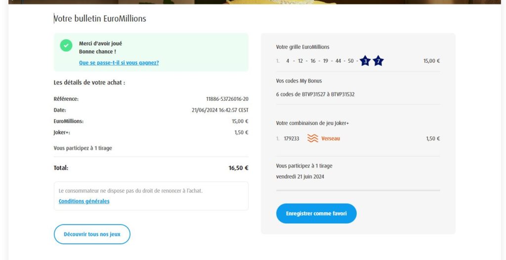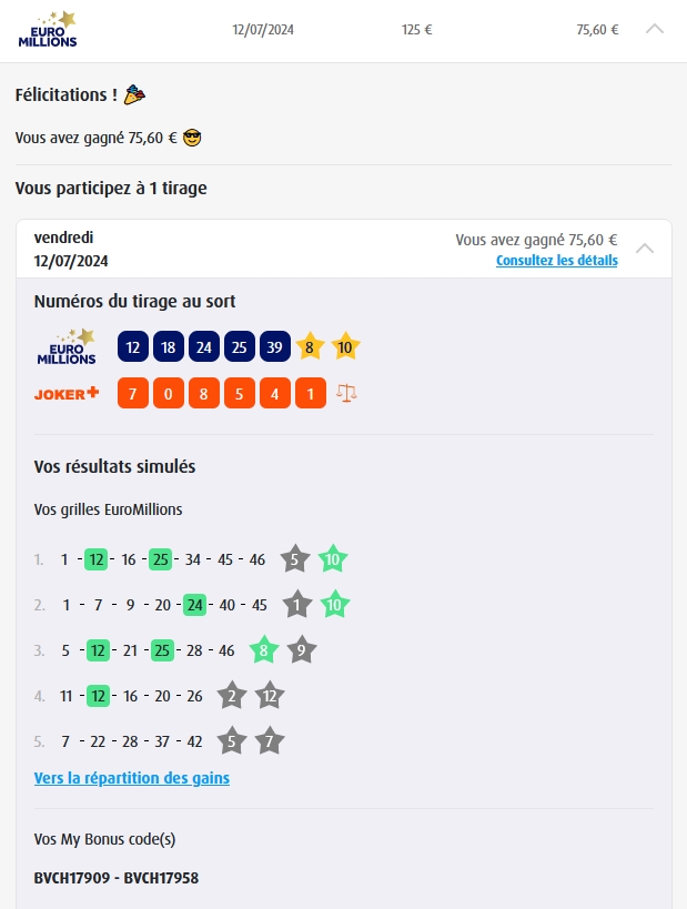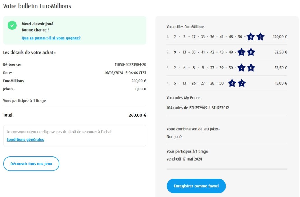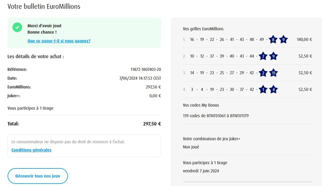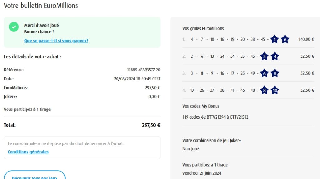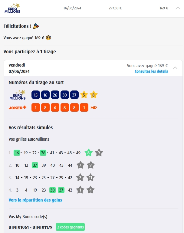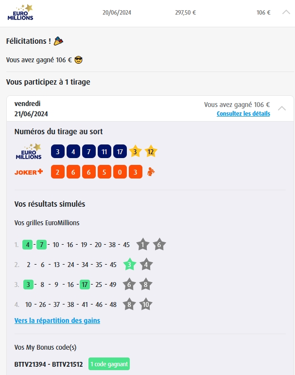 Categories Bulletin Tirage Bulletin du 07/06/2024 Post author By yves Post date 7 juin 2024 Gains: 169€