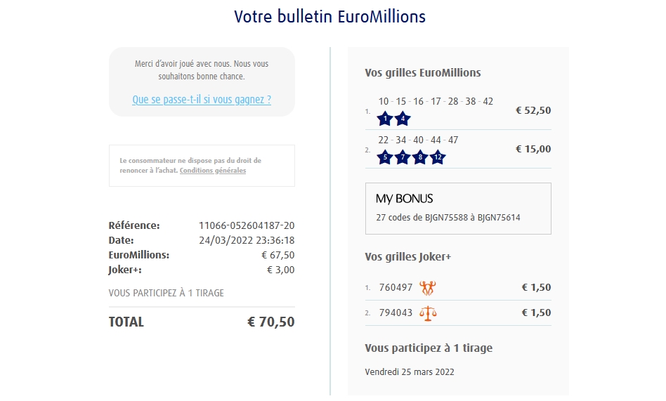 Categories Bulletin Tirage Bulletin du 25/03/2022 Post author By yves Post date 24 mars 2022 Gains: 5,50€