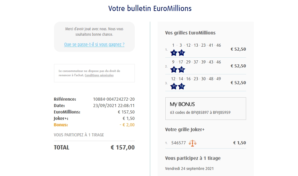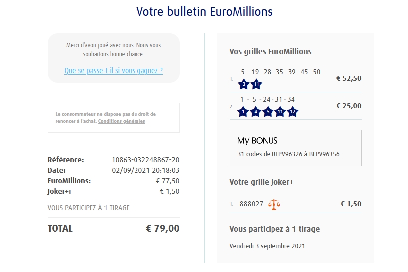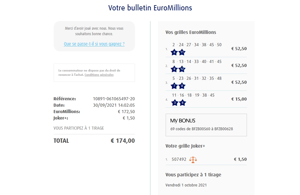 Categories Bulletin Tirage Bulletin du 01/10/2021 Post author By yves Post date 30 septembre 2021 Gains: 40€