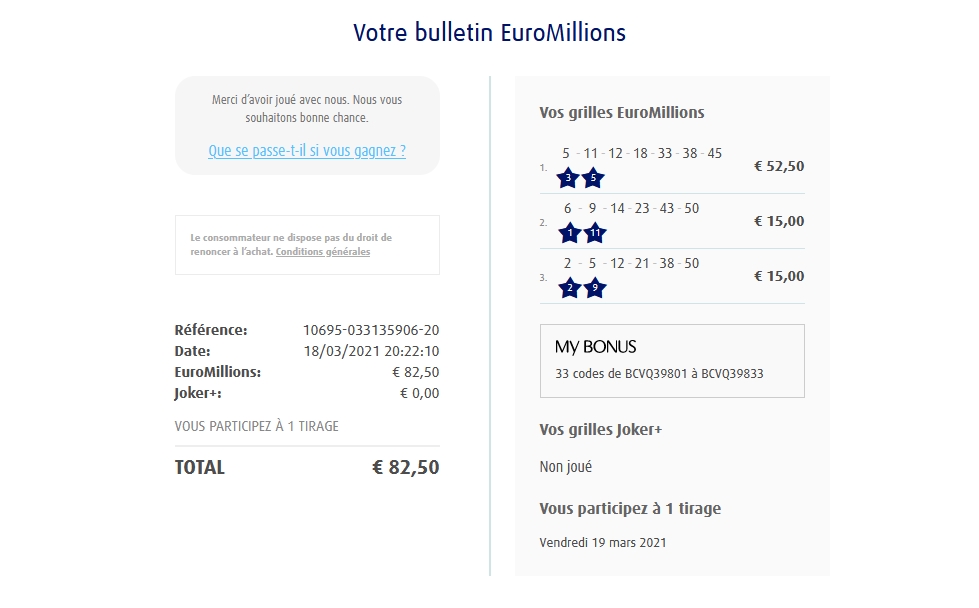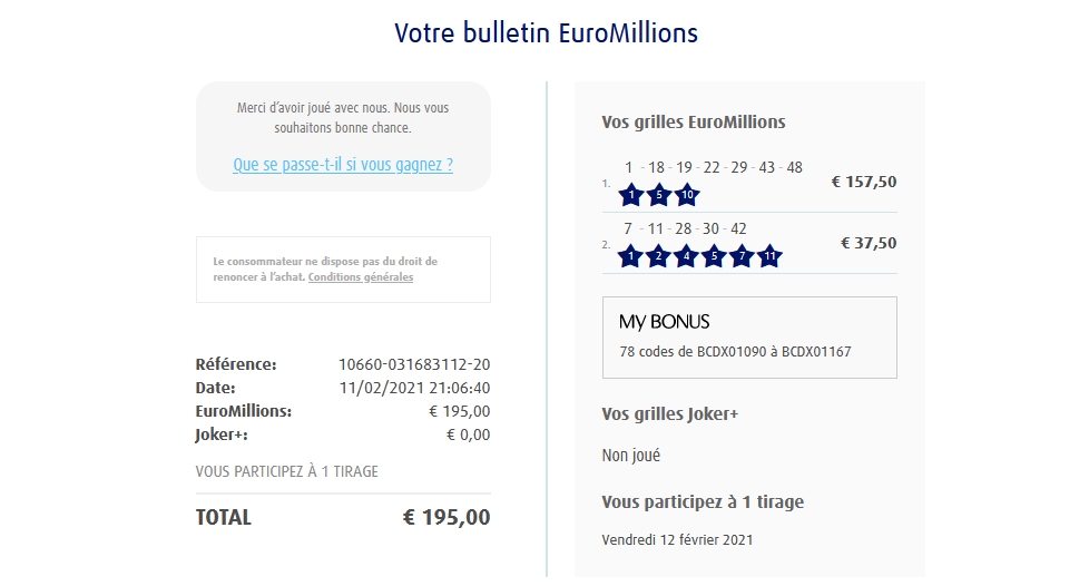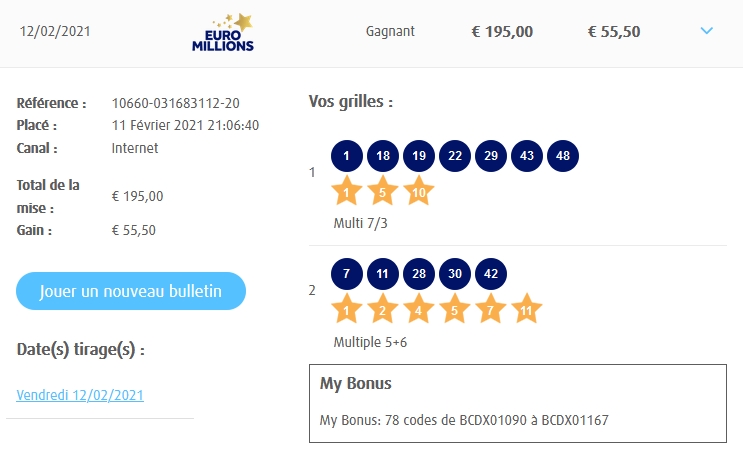 Categories Bulletin Tirage Bulletin du 12/02/2021 Post author By yves Post date 11 février 2021 Gains: 55,50€